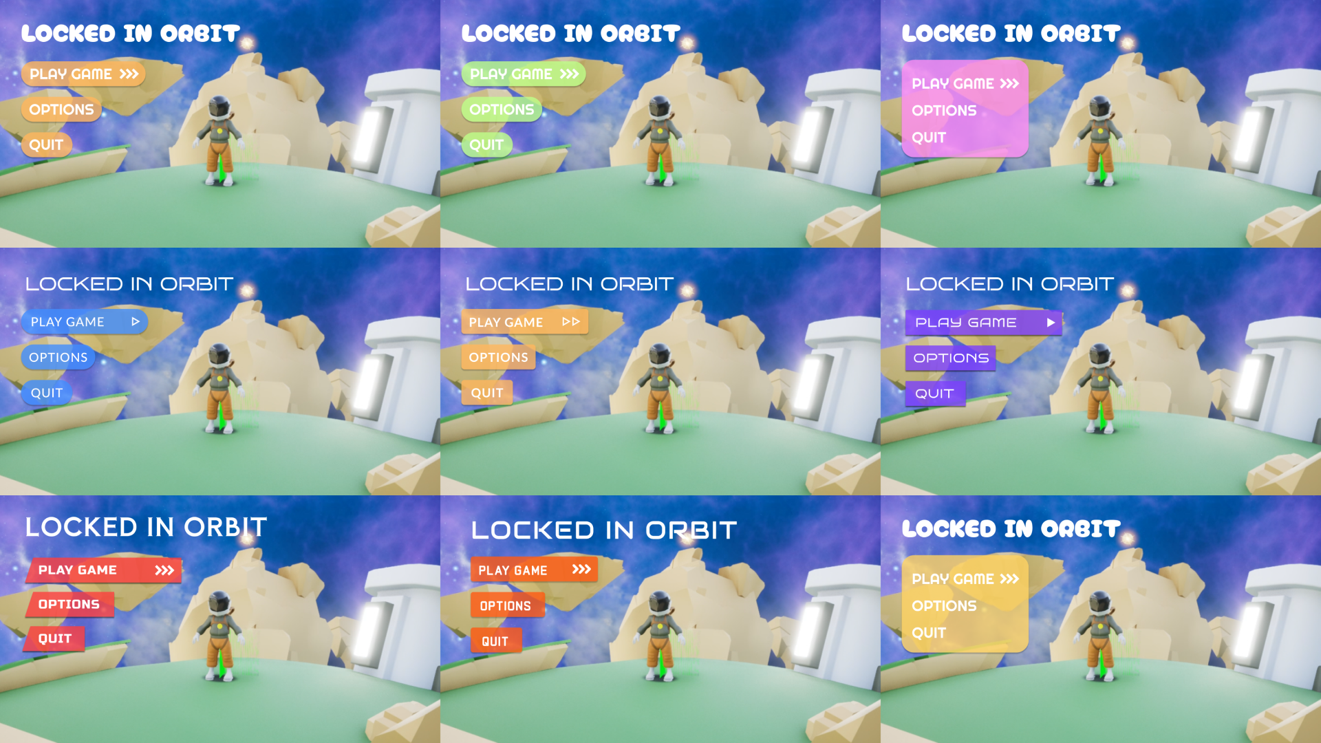 The menus were kept a simple style with subtle animations. The layout of the menus were kept consistent with slight changes for different content such as buttons, sliders or containers.